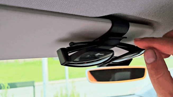 - Manyetik tasarımı sayesinde, araç içi gözlük tutucu yerleştirilebilir ve güvenli bir şekilde sabitlenir.