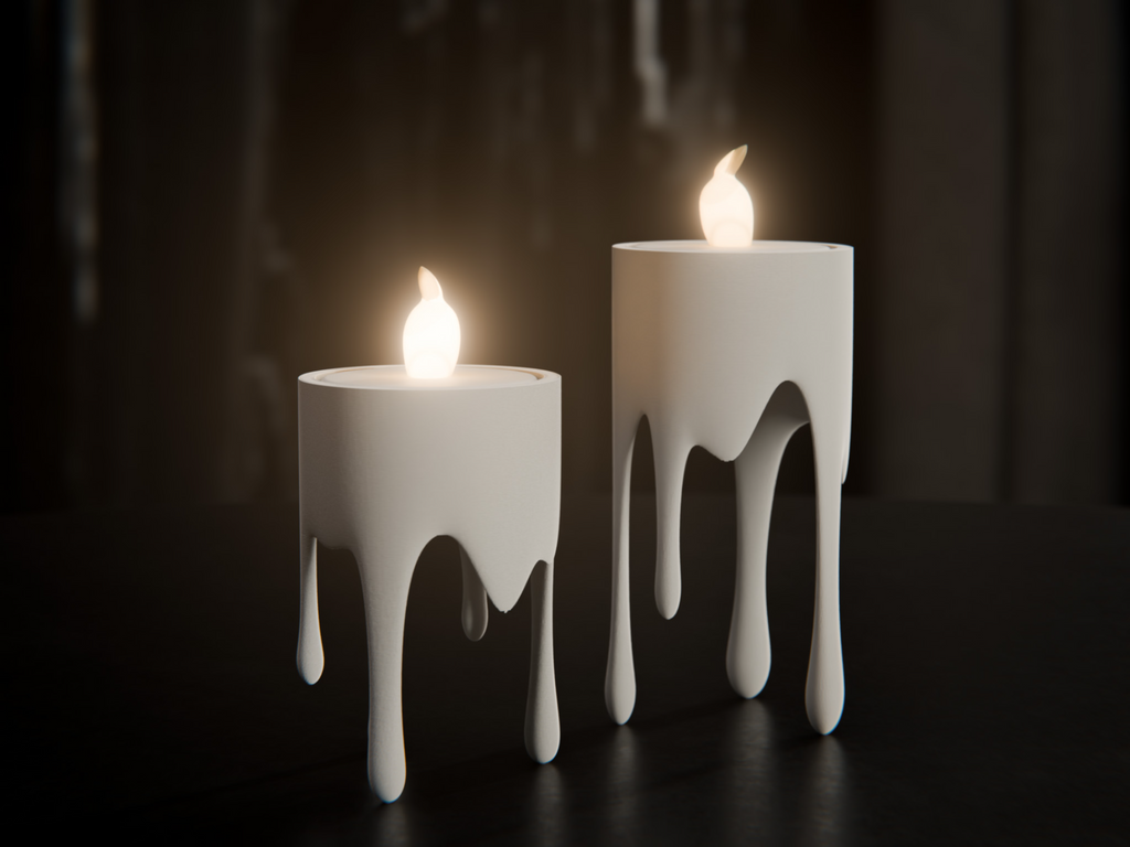 Yüzen Damlayan Mum – LED Tealight Tutucu, eriyormuş gibi görünen damla efektiyle tasarlandı.